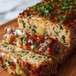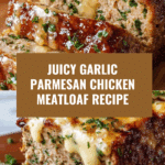 This Juicy Garlic Parmesan Chicken Meatloaf is a flavorful and moist twist on the classic meatloaf. Made with ground chicken, Parmesan cheese, and a blend of herbs and spices, this recipe delivers a tender and savory dish perfect for family dinners. The garlic Parmesan glaze adds an extra layer of richness and a beautiful finish, making it a crowd-pleaser that’s both comforting and elegant.