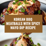 Delicious Korean BBQ Meatballs coated in a sweet and spicy glaze, served with a creamy, tangy spicy mayo dip. Perfect as a flavorful appetizer or a tasty main dish, combining the rich flavors of gochujang, garlic, and ginger with tender ground beef meatballs.