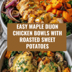 Keywords: maple Dijon chicken, roasted sweet potatoes, healthy bowl, quinoa bowl, gluten free dinner, easy chicken recipe, autumn recipes