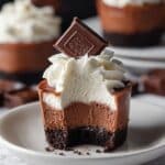 - Garnish and Serve: Once set, pipe swirls of whipped cream on top of each mini pie. Decorate each with a square of dark chocolate or sprinkle with chocolate shavings. Serve immediately for best texture and flavor.