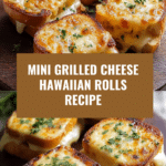 These Mini Grilled Cheese Hawaiian Rolls feature soft, sweet rolls filled with a creamy blend of shredded cheddar and mozzarella cheeses, enhanced with garlic and herbs, baked to melty perfection. Perfect as a cozy snack or an appetizer, these bite-sized sandwiches offer a nostalgic comfort food twist with a sweet Hawaiian roll base and savory cheesy filling.