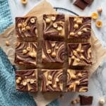 Delight in these Nutella Swirled Banana Blondies, a luscious twist on classic blondies featuring mashed ripe banana, chunks of milk chocolate, chopped hazelnuts, and generous swirls of creamy Nutella. Perfectly moist and sweet with a slight crunch, these blondies are an irresistible treat for any chocolate and nut lover.