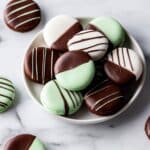 5. Step 5: Let the peppermint creams dry for at least three hours or overnight. For an extra touch, dip or drizzle them with melted dark chocolate, transfer back to the lined sheet, and allow the chocolate to set before enjoying.