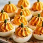 Keywords: deviled eggs, pumpkin deviled eggs, Halloween appetizer, fall recipes, festive snacks, party appetizers