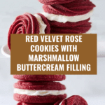 Keywords: Red Velvet Cookies, Rose Cookies, Piped Cookies, Sandwich Cookies, Marshmallow Buttercream Cookies, Valentine Cookies, Chocolate Cookies