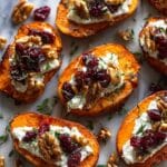- Add Toppings: Sprinkle chopped toasted walnuts and dried cranberries over the ricotta-topped sweet potato rounds for a delightful sweet and crunchy finish.