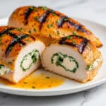 This Ruth’s Chris Stuffed Chicken Copycat recipe features tender chicken breasts stuffed with a creamy mixture of cream cheese, spinach, and mozzarella, infused with Italian seasoning and garlic powder. The chicken is seared to perfection and then baked in a savory chicken broth with a hint of fresh lemon juice, topped with Parmesan cheese for a rich and flavorful meal that’s easy to prepare and sure to impress.