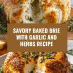 This Savory Baked Brie with Garlic and Herbs is a warm, creamy appetizer perfect for any gathering. Wrapped in a blend of olive oil, fresh garlic, thyme, and rosemary, the melted Brie is fragrant and irresistible. Served with crackers or baguette slices, it offers an elegant yet simple way to impress your guests with minimal effort.