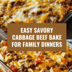 This Savory Cabbage Beef Bake is a hearty, comforting dish perfect for weeknight dinners. Combining ground beef, cabbage, and rice with flavorful seasonings, it’s easy to prepare and satisfying for the whole family.