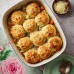 While the filling freezes well, the biscuits may lose their texture after freezing and reheating. It’s best to freeze just the filling and bake fresh biscuits when ready to eat.
