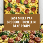 Keywords: broccoli bake, sheet pan meal, tortellini bake, chicken sausage recipe, easy dinner, roasted broccoli, cheese tortellini