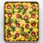 Keywords: broccoli bake, sheet pan meal, tortellini bake, chicken sausage recipe, easy dinner, roasted broccoli, cheese tortellini