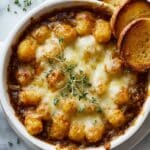 Keywords: baked gnocchi, French onion gnocchi, cheesy gnocchi bake, caramelized onion, comfort food, easy dinner