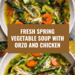 Keywords: spring vegetable soup, chicken soup, orzo soup, healthy soup, easy soup recipe, seasonal vegetables, light dinner