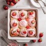 Keywords: strawberry cinnamon rolls, strawberry cream cheese glaze, homemade cinnamon rolls, sweet rolls, strawberry filling, breakfast pastry, dessert rolls