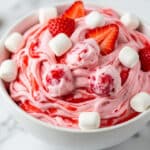 Strawberry Fluff Salad is a delightful no-cook dessert salad combining sweet strawberry Jell-O, creamy vanilla pudding, fluffy whipped topping, and a medley of fresh strawberries, crushed pineapple, and mini marshmallows. Perfectly chilled and easy to prepare, this refreshing salad is a crowd-pleaser at potlucks and family gatherings.