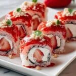 Strawberry Shortcake Sushi Rolls are a delightful twist on the classic dessert, featuring a light and fluffy sponge cake rolled with sweet whipped cream and fresh strawberries. These elegant sushi-style rolls are perfect for parties, special occasions, or anytime you crave a fun and fruity treat.