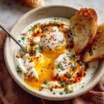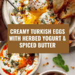 Turkish Eggs with Creamy Yogurt & Butter Sauce is a vibrant and comforting dish that combines silky yogurt, perfectly poached eggs, and a fragrant spiced butter sauce. It’s a simple yet elegant breakfast or brunch option that’s sure to impress.