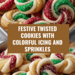 Twisted Cookies are a delightful holiday treat combining buttery sweetness with festive flavors like almond and orange zest. Topped with vibrant icing and sparkling decorations, these cookies bring joy and color to any celebration.