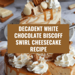 This White Chocolate Biscoff Swirl Cheesecake combines creamy white chocolate and the irresistible spiced flavor of Biscoff biscuits for a decadent treat. With a crunchy base and a smooth, swirled filling, it’s perfect for special occasions or any time you want to impress your guests.